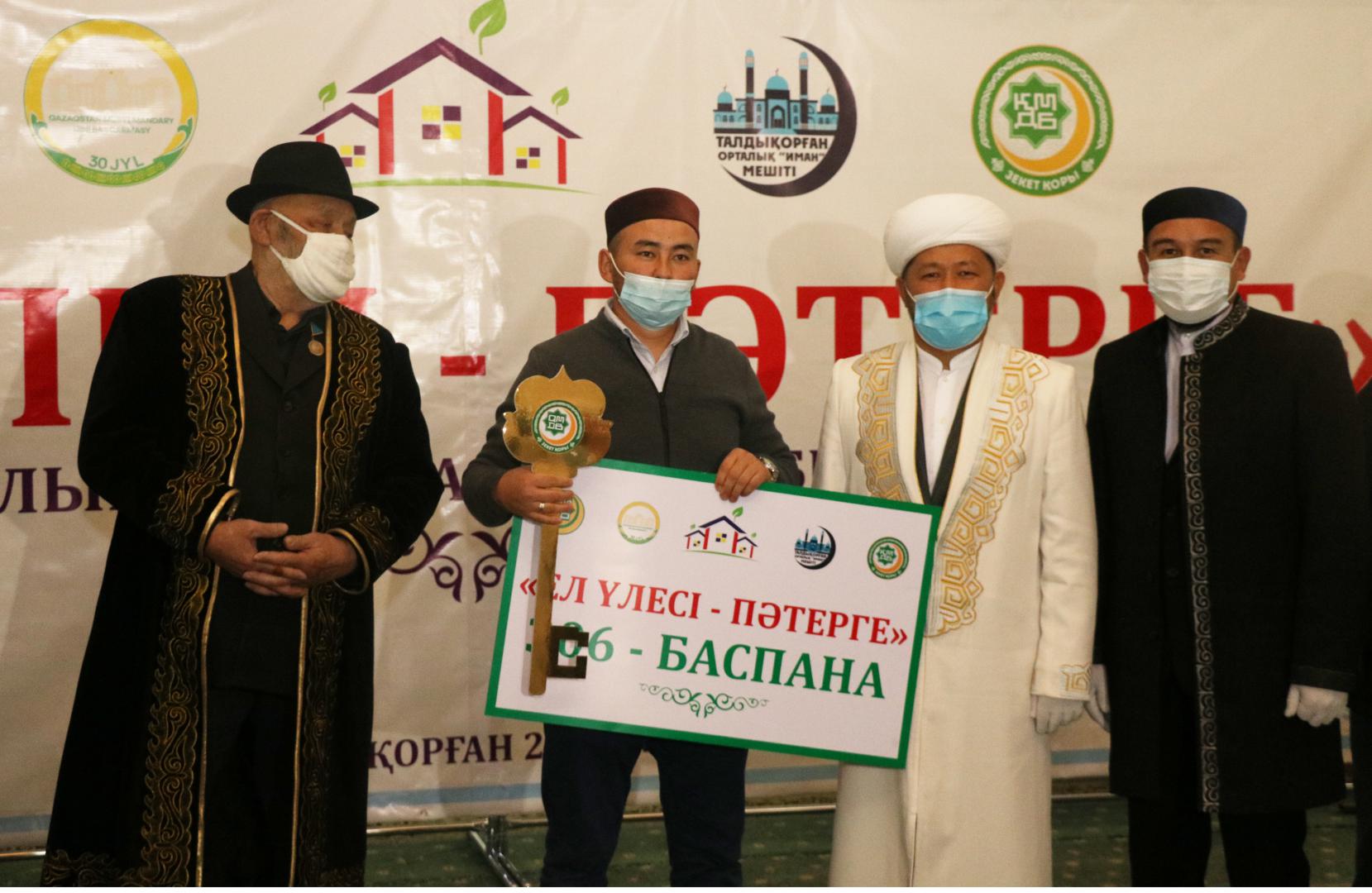 Председатель Духовного управления мусульман Казахстана, Верховный муфтий Наурызбай кажы Таганулы вручил ключи от квартир 10 малообеспеченным семьям Талдыкоргана в рамках проекта «Ел үлесі – пәтерге» фонда «Зекет».