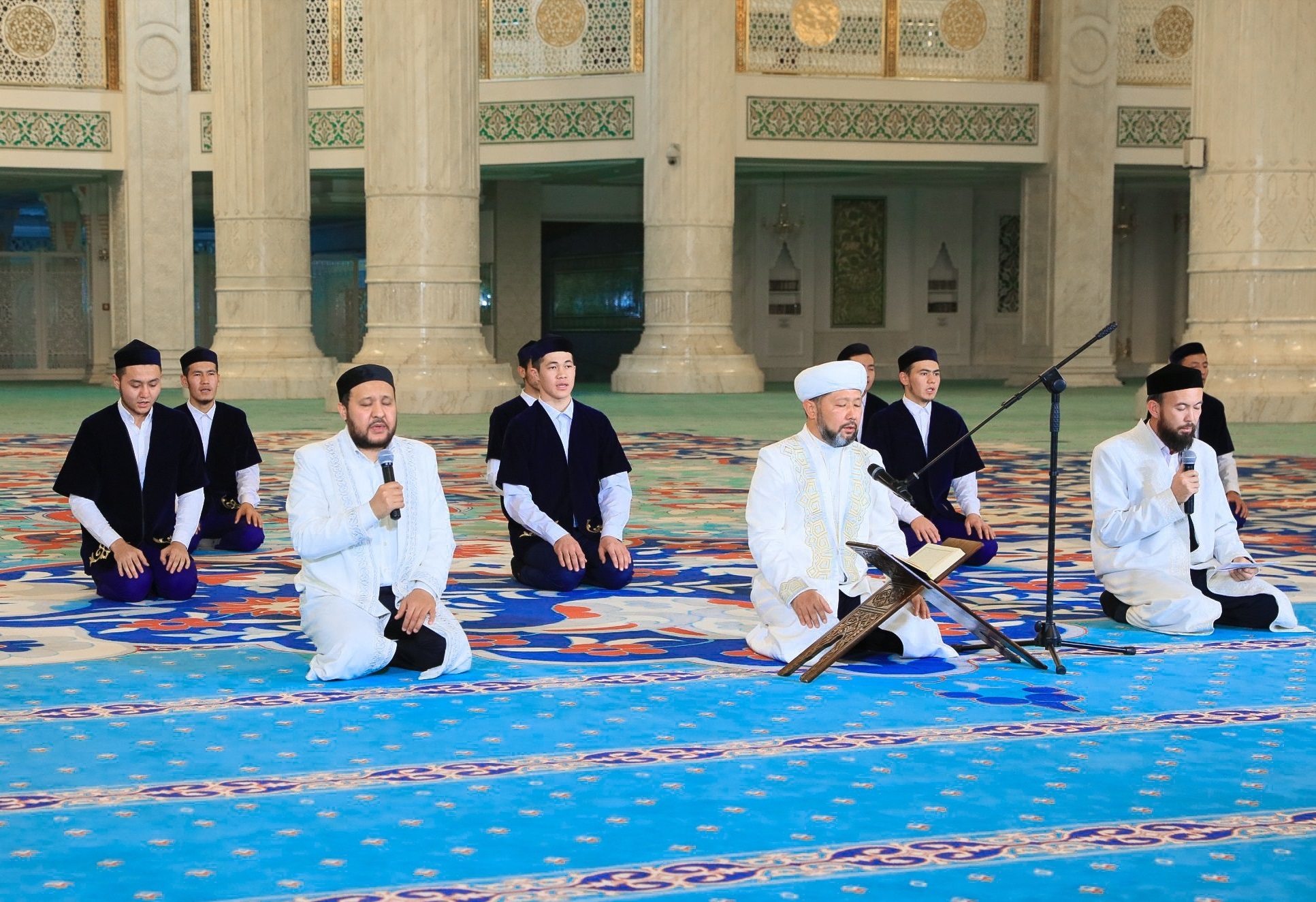 Затем наиб-имам мечети «Хазрет Султан» Жуманазар Садырханов, муэдзин Ерлан Битенов и ученики медресе прочитали мавлид Барзанджи и салават Пророку Мухаммаду (мир ему и благословение Аллаха).