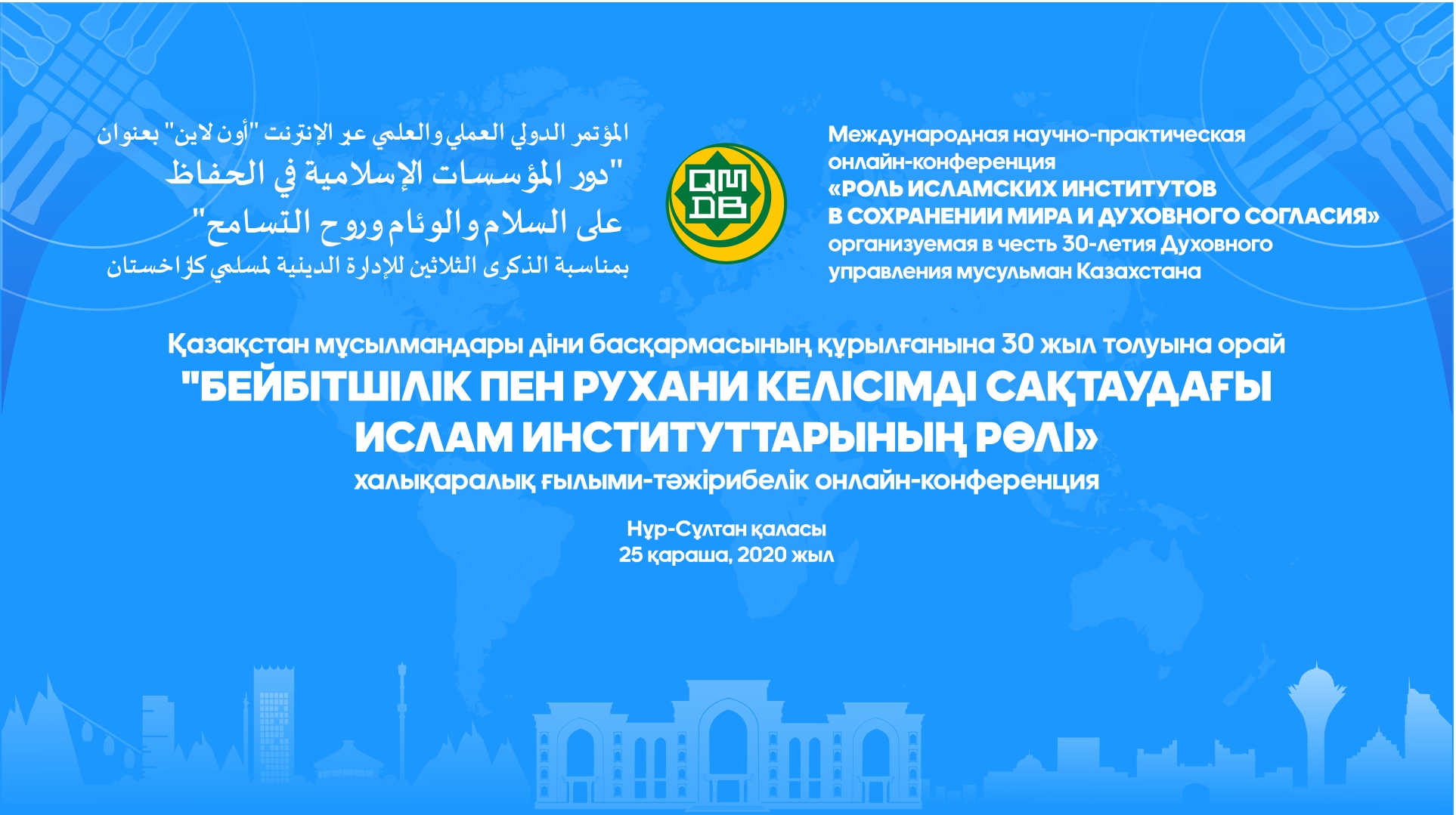Завтра, 25 ноября, в 14:00 состоится международная конференция «Роль религиозных институтов в поддержании мира и духовного согласия», посвященная 30-летию Духовного управления мусульман Казахстана.