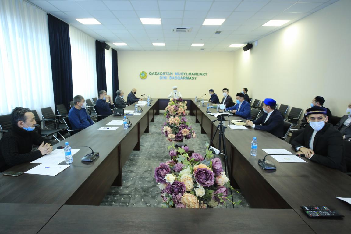 На встрече присутствовали заместитель председателя ДУМК, наиб муфтий Ершат Агыбайулы, руководитель аппарата Гылымбек Жадигерулы и члены рабочей группы.