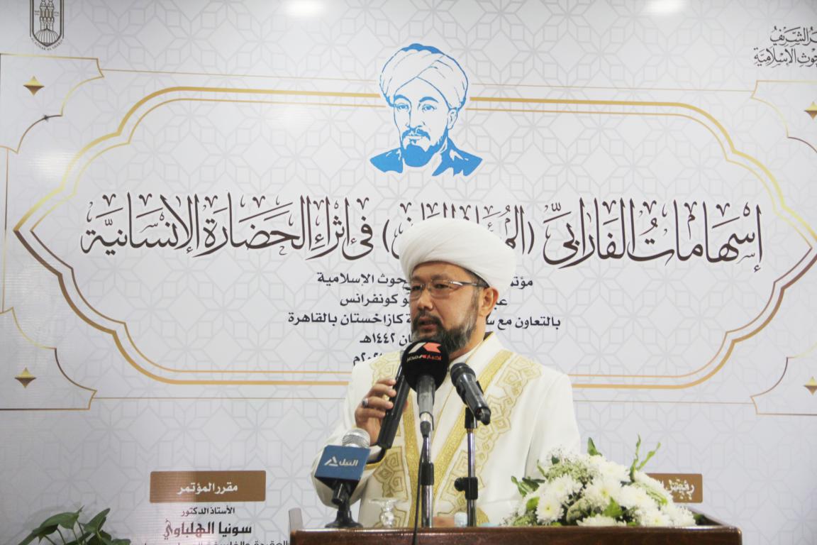 Выступая на конференции, Верховный муфтий Наурызбай кажы Таганулы поприветствовал присутствующих и сказал: «Казахстан является родиной Абу Насыра аль-Фараби. В прошлом году в нашей стране было проведено исследование самого известного мыслителя Отрара – великого ученого Абу Насыра аль-Фараби, известного как «второй учитель» после Аристотеля, и названного «Аристотелем Востока». Мы и по сей день продолжаем работу в этом направлении. В то же время я хотел бы выделить одно его высказывание. По словам аль-Фараби, наиболее важными вопросами в общении и управлении являются достижение истины, милосердие, добрые дела и т.д. Это под силу только искреннему человеку. Потому что, как сказал наш великий предок, человек с большим сердцем, обладающий знанием, живет во имя мудрости и милосердия. Дай Всевышний Аллах нам благой жизни. Аминь!».