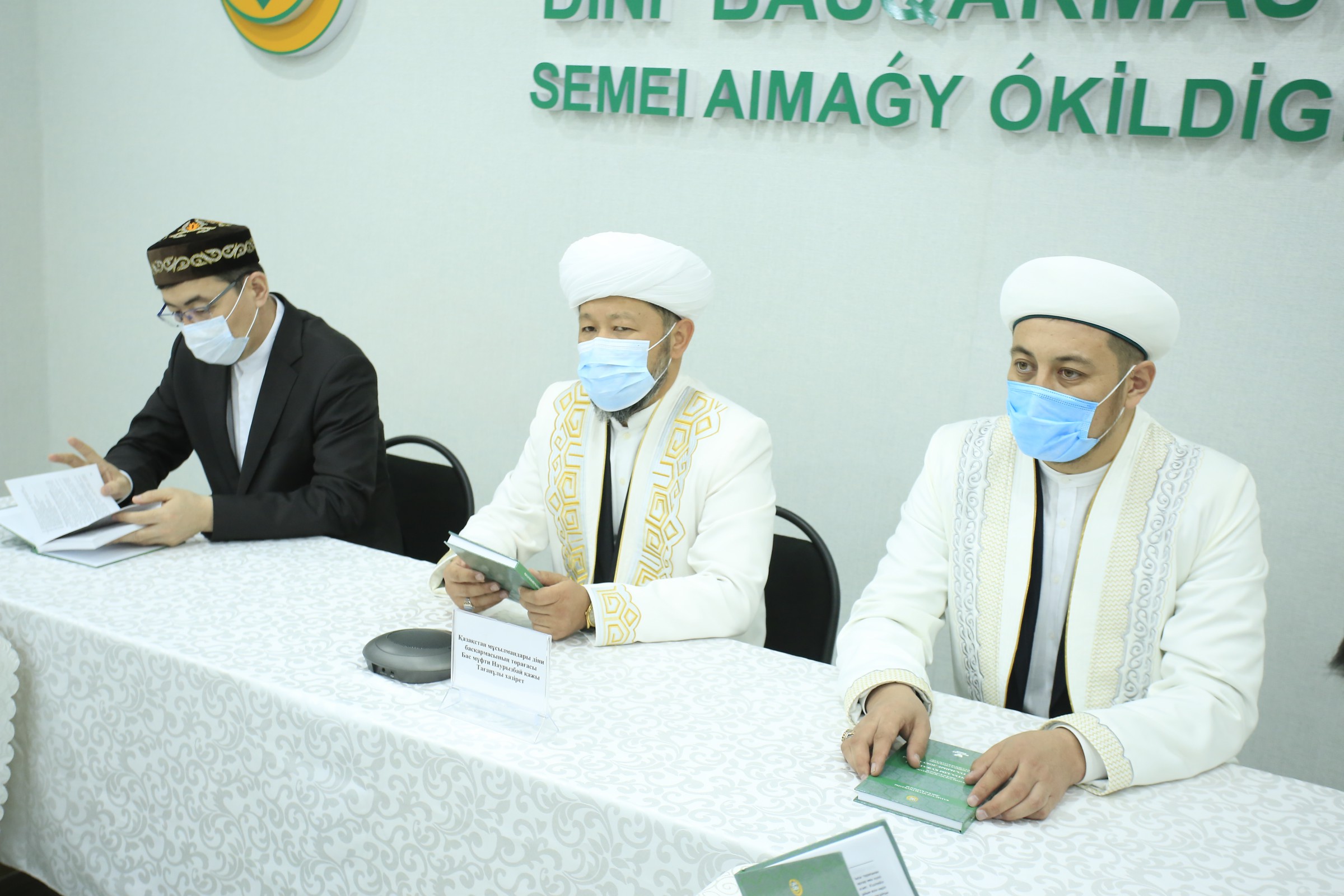 На встрече присутствовали руководитель Аппарата ДУМК Гылымбек Жадигерулы, директор фонда «Закят и благотворительность» Талгат Сейткаримулы и директор Центра ритуальных услуг «Qamqor-Sharapat» Камалжан Турдыбаев.