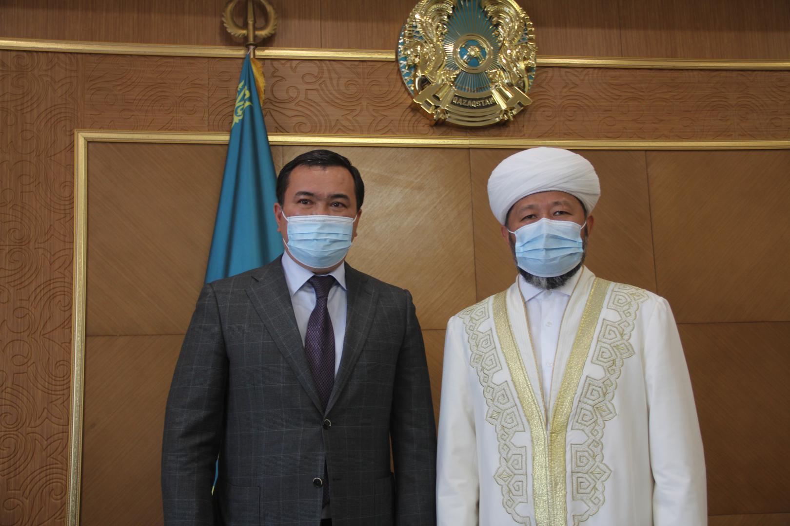 Прибывший с двухдневным официальным визитом в Карагандинскую область Председатель ДУМК, Верховный муфтий Наурызбай кажы Таганулы встретился сегодня с главой области Женисом Касымбеком.