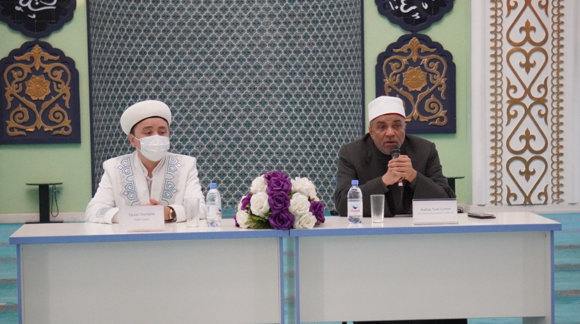 Сегодня в мечети «Байкен» в Алматы заместитель министра Арабской Республики Египет, профессор Джабир Тайг Султан встретился с имамами. На встрече присутствовал заместитель председателя ДУМК, наиб муфтий Ершат кажы Агыбайулы.