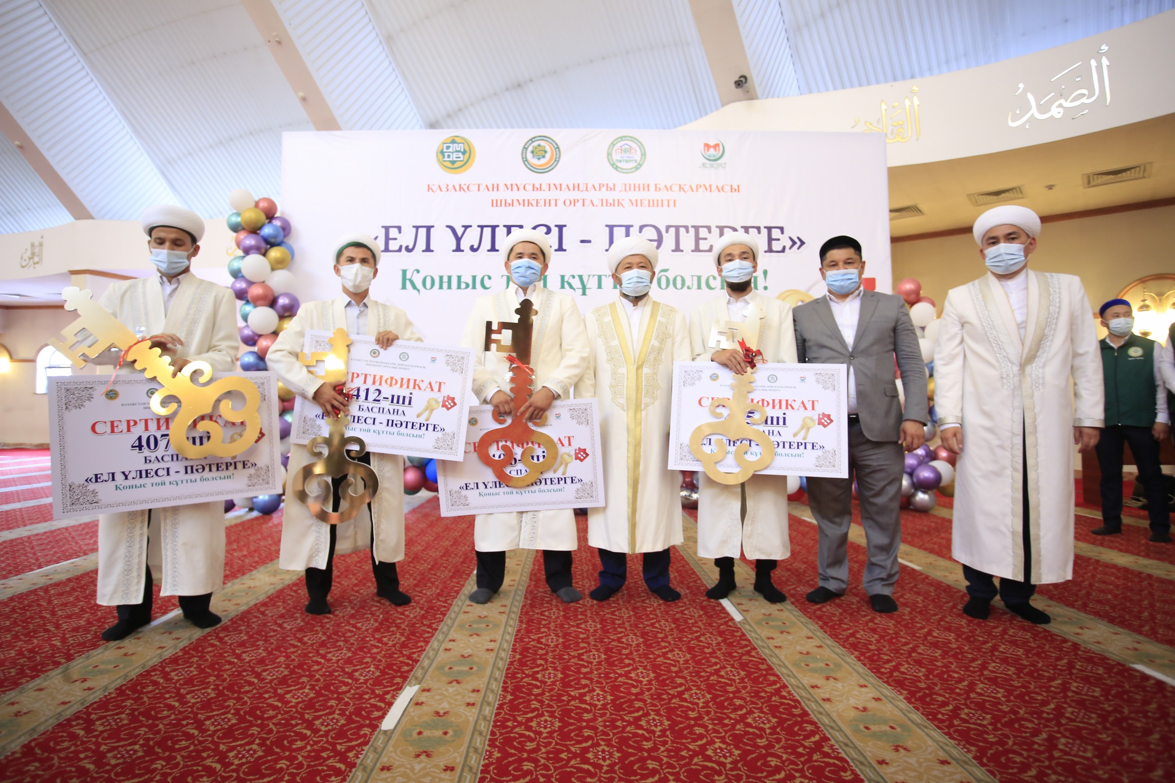 Ключи от дома получили муэдзин мечети «Айтбай ата» в Шымкенте Илияс Бекжан, имам мечети «Атамекен» Даулет Туленов, имам мечети «Тажибай ата» Еркебулан Серикбаев и имам мечети «Усенбек ата» Мустафа Бауыржан улы.