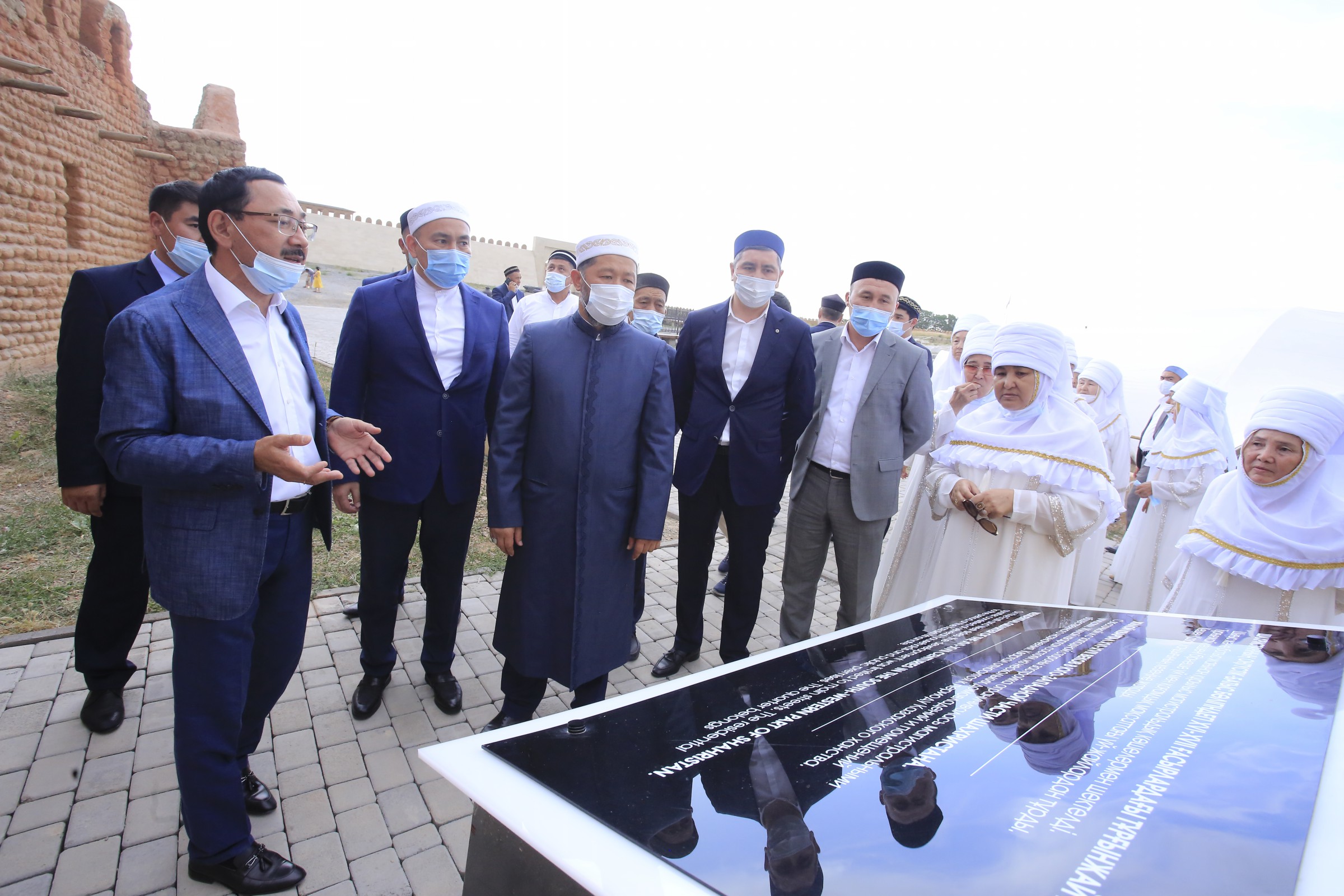 Исторический комплекс этноауыл, построенный на месте древнего города Шымкент, был открыт 1 апреля этого года. Новый комплекс посетила делегация во главе с Председателем ДУМК, Верховным муфтием Наурызбаем кажы Таганулы.