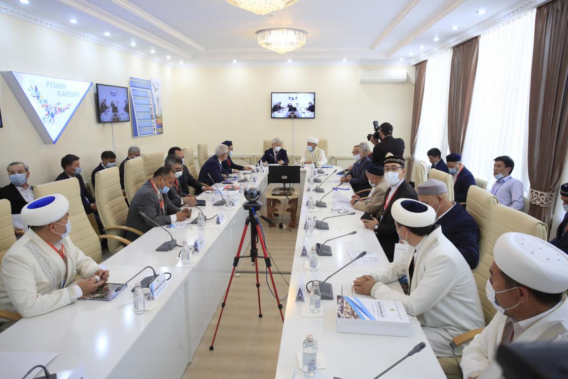 На встрече присутствуют Председатель ДУМК, Верховный муфтий Наурызбай кажы Таганулы, аким Жамбылской области Бердыбек Сапарбаев, заместитель председателя Духовного управления мусульман Узбекистана Хомиджан Ишманбетов, руководитель аппарата Духовного управления мусульман Кыргызстана Раушан Иратов, историки и ученые, профессора отечественных и зарубежных вузов, востоковеды.