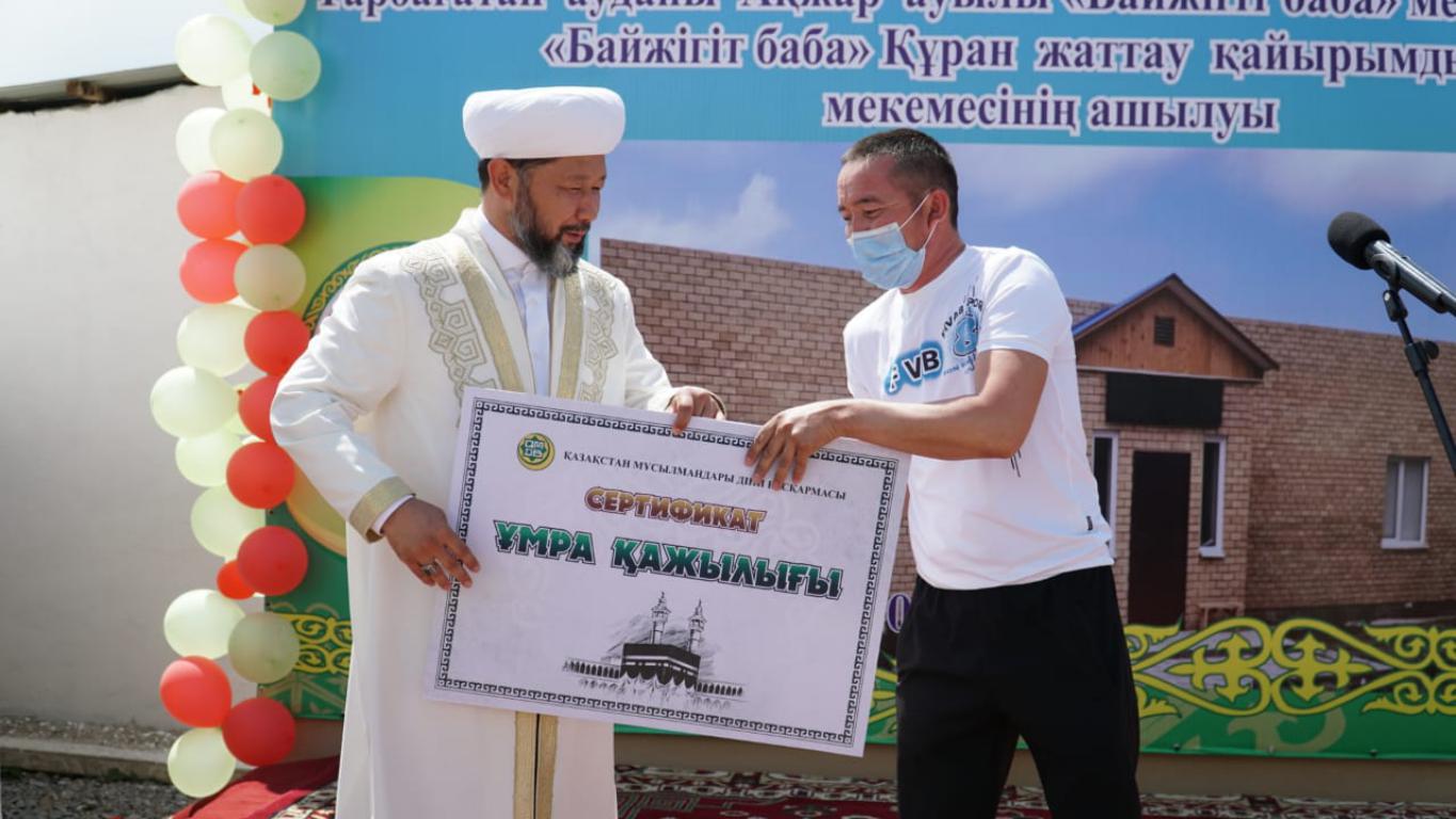 В ходе официального визита в Восточно-Казахстанскую область Верховный муфтий Наурызбай кажы Таганулы поблагодарил Ерболата Долдабаева, построившего здание благотворительного учреждения в селе Акжар Тарбагатайского района, и вручил волонтеру путёвку на малый хадж.