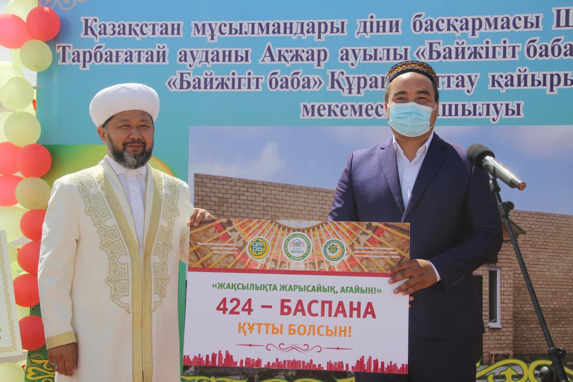 Председатель Духовного управления мусульман Казахстана Наурызбай кажы Таганулы вручил ключи от 424-й квартиры имаму села в рамках благотворительного проекта фонда «Закят и благотворительность» «Ел үлесі – пәтерге».