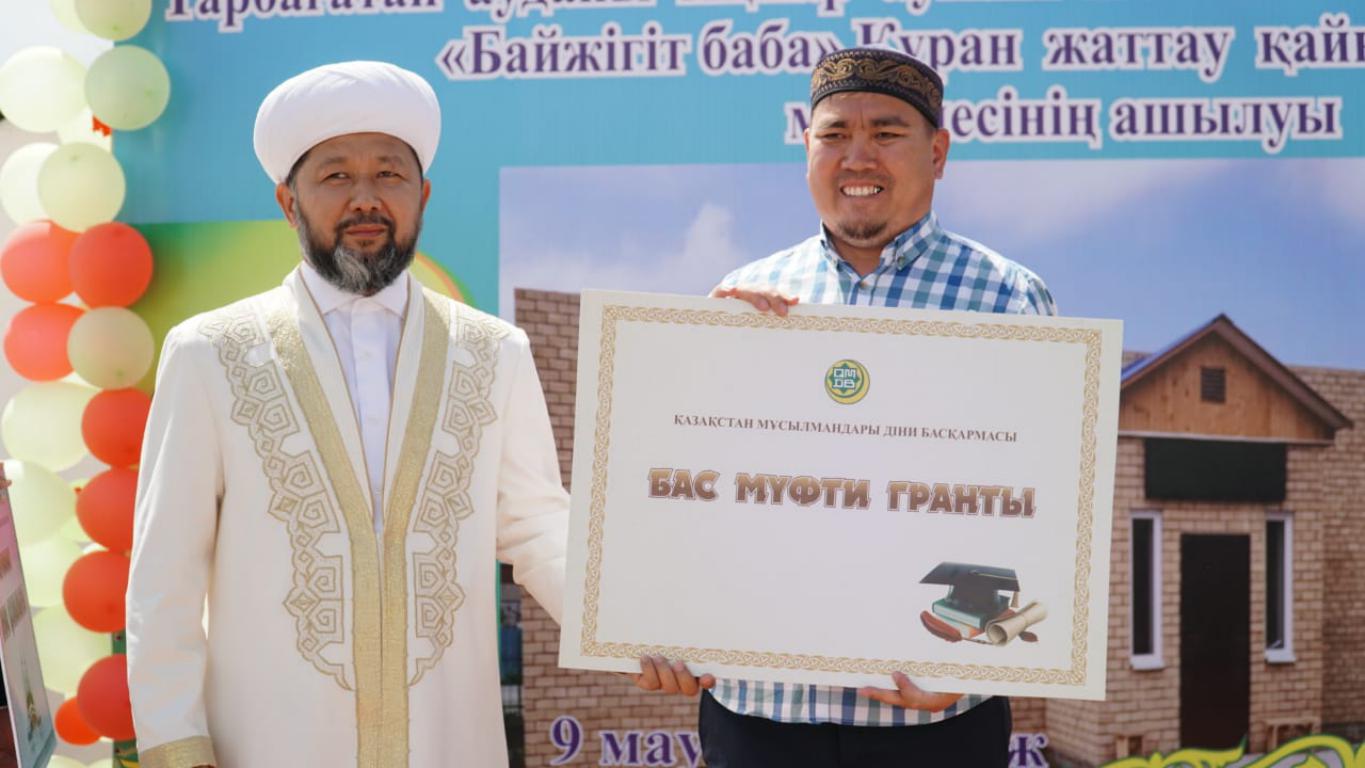 В ходе официального визита в Восточно-Казахстанскую область Верховный муфтий Наурызбай кажы Таганулы вручил образовательный грант Ринату Назарбекову, жителю села Акжар Тарбагатайского района, который в настоящее время учится в университете Нур-Мубарак в Алматы.
