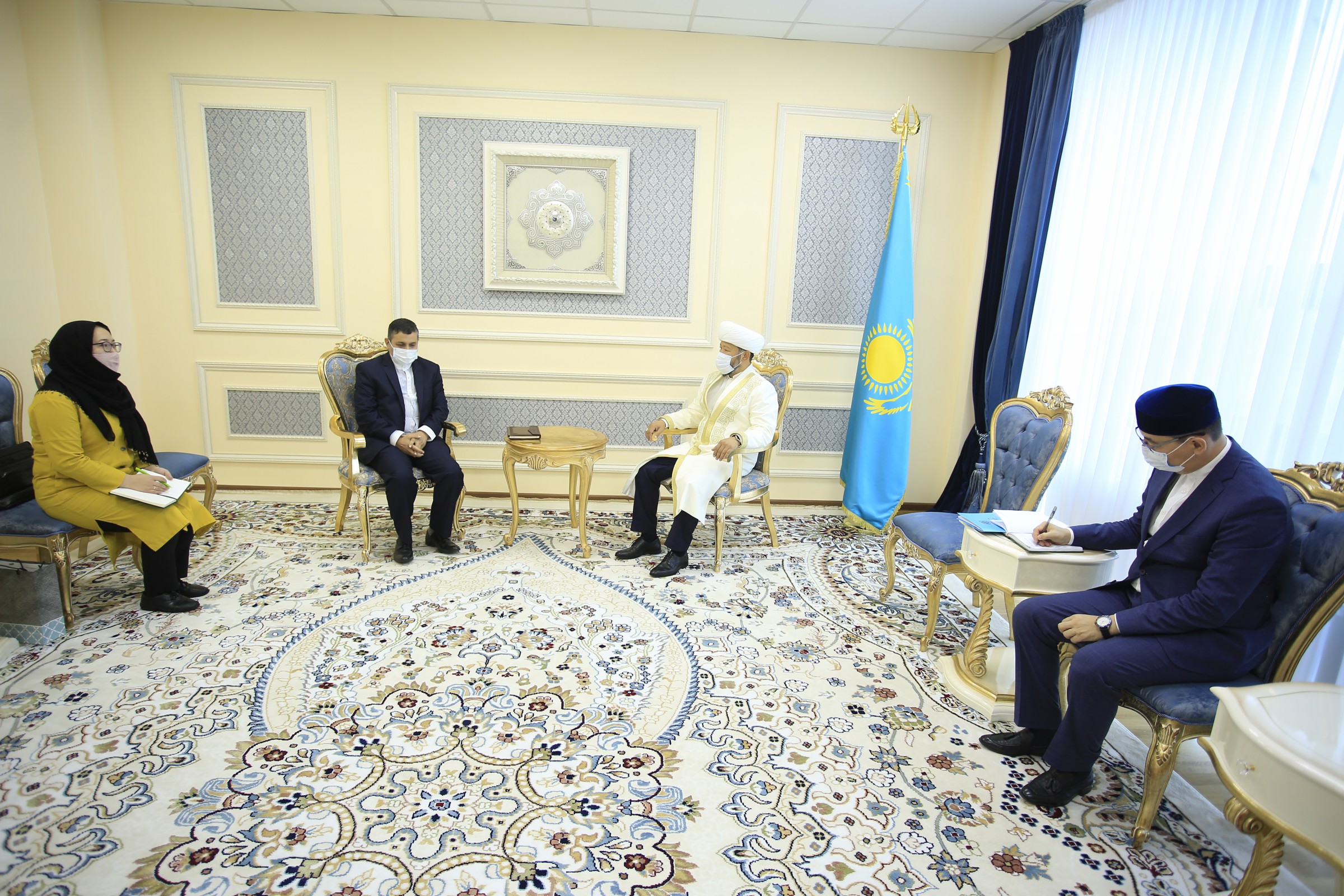 На встрече Верховный муфтий и советник посла обменялись мнениями по ряду вопросов, включая реализацию исследовательских проектов, издание книги об исламских ценностях, совместную деятельность в области образования и науки.