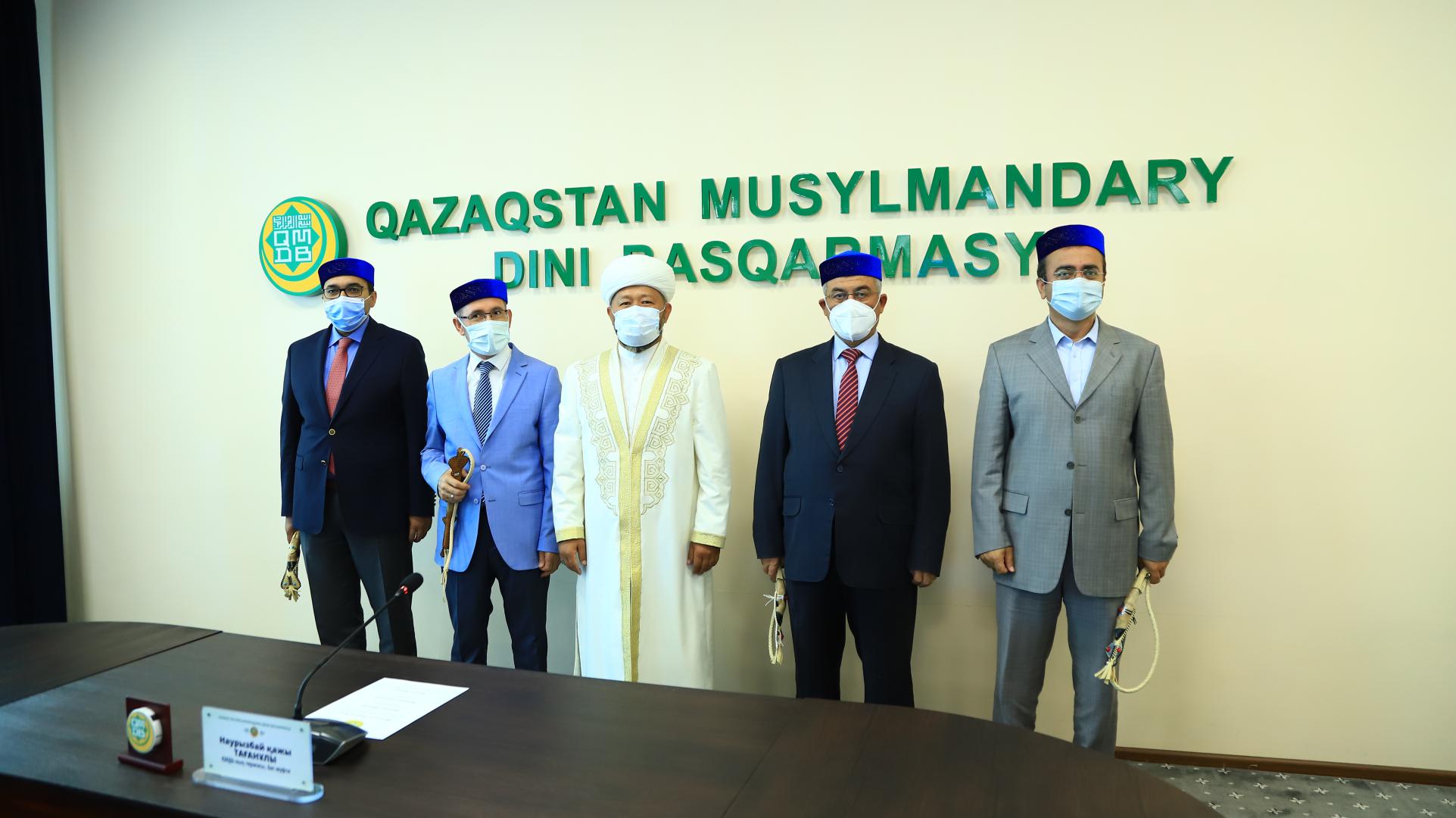 На встрече присутствовали наиб муфтий Ершат Агыбайулы, руководитель Аппарата ДУМК Гылымбек Жадигерулы и заведующий отдела пропаганды Батыржан Берденулы.