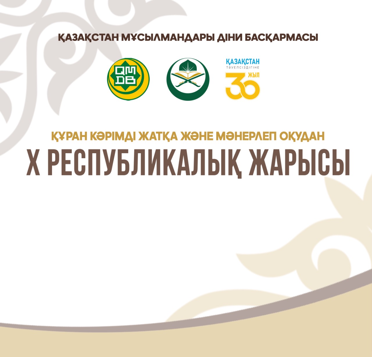 Пророк (да благословит его Аллах и приветствует) сказал в хадисе: «Лучшие из вас те, кто изучает Коран и обучает его другим». Духовное управление планирует провести Х Республиканский конкурс чтения Корана, посвященный 30-летию Независимости, 6-7 октября в священном городе Туркестан. Конкурс будет проводиться по номинациям: заучивание и выразительное чтение 30 пар, 20 пар, 10 пар Священного Корана.
