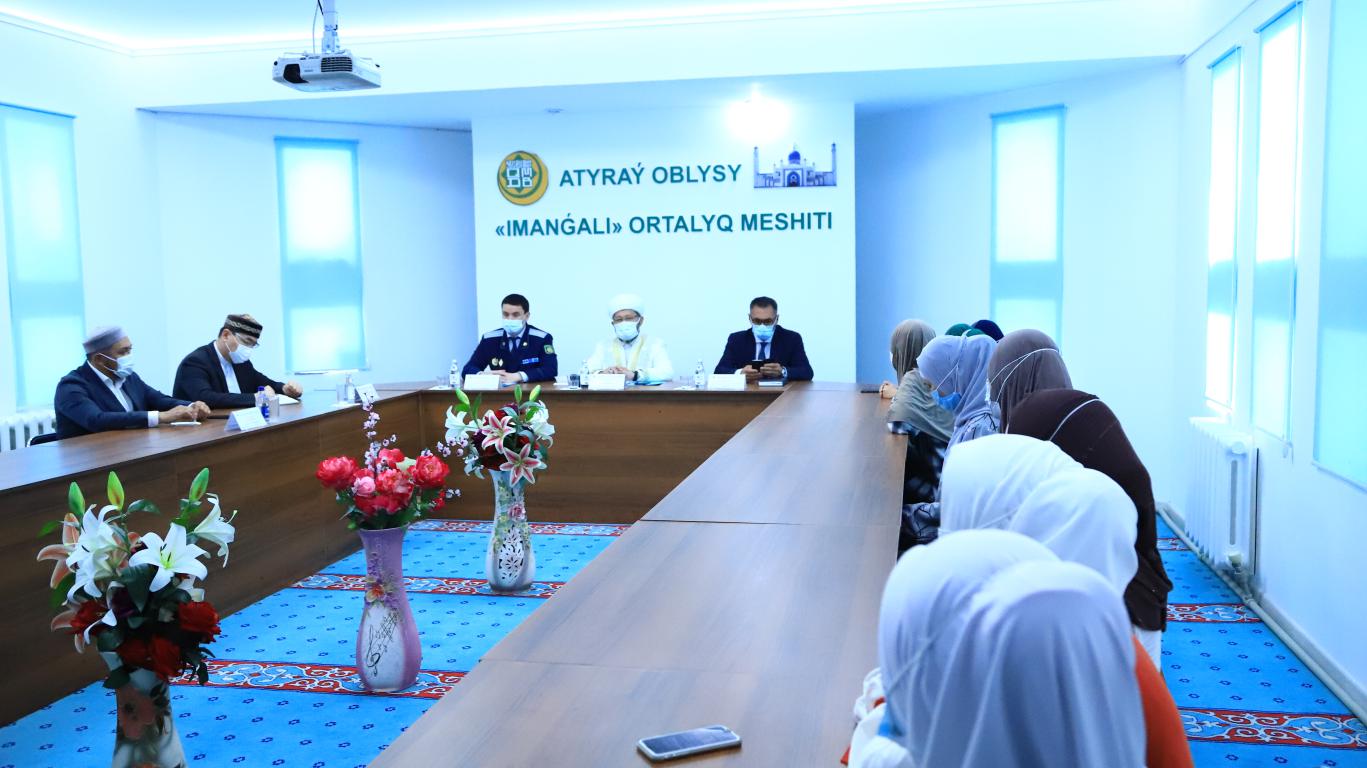 Председатель Духовного управления мусульман Казахстана Наурызбай кажы Таганулы встретился с женщинами, возвращенными в страну в результате операции «Жусан» в мечети «Имангали» в Атырау.