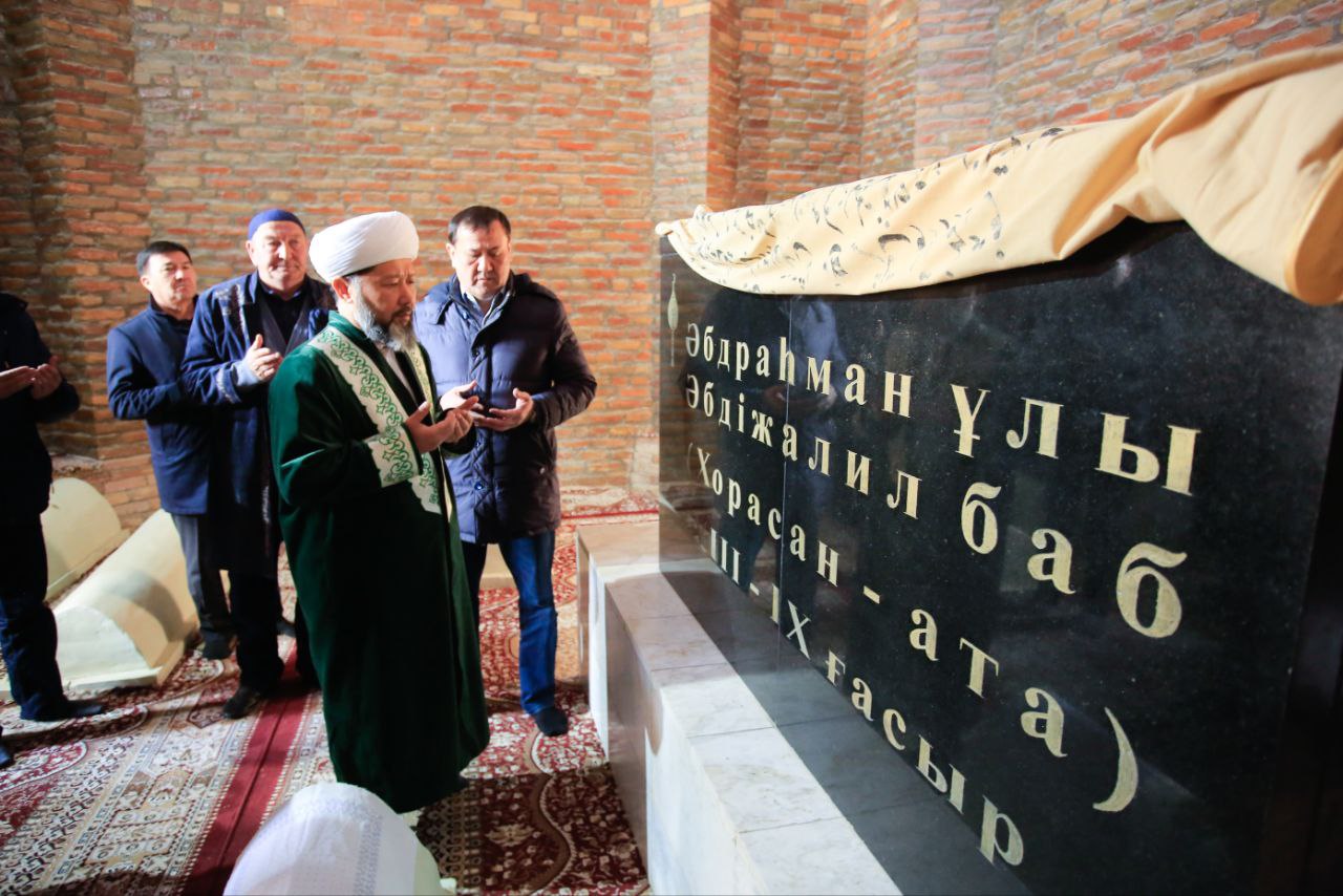 В ходе рабочей поездки в Кызылординскую область Председатель Духовного управления мусульман Казахстана Наурызбай кажы Таганулы посетил мавзолей Хорасан Ата в Жанакорганском районе и посвятил духам предков Коран.