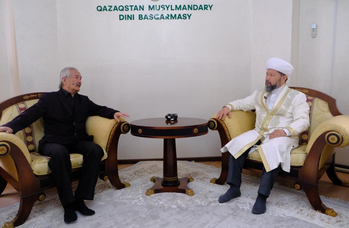 Председатель Духовного управления мусульман Казахстана, Главный муфтий Наурызбай кажы Таганулы встретился в Алматы с писателем, драматургом Смагулом Елубаем.