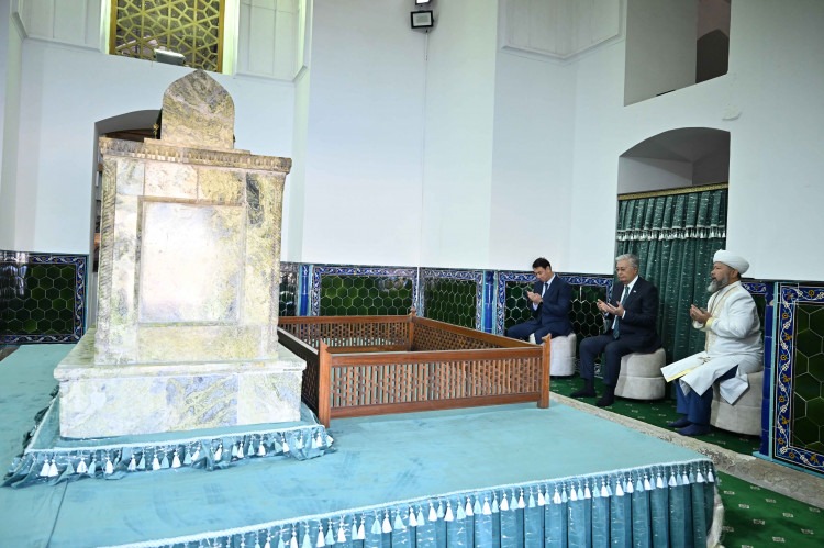 Президент Касым-Жомарт Токаев начал свою рабочую поездку в Туркестанскую область с посещения мавзолея Ходжи Ахмеда Яссауи.