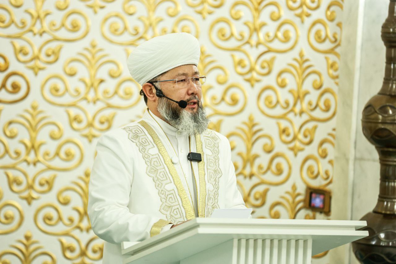 Сегодня председатель Духовного управления мусульман Казахстана, Верховный муфтий Наурызбай кажы Таганулы посетил мечеть «Хазрет Султан» в столице и обратился с проповедью к джамаату.