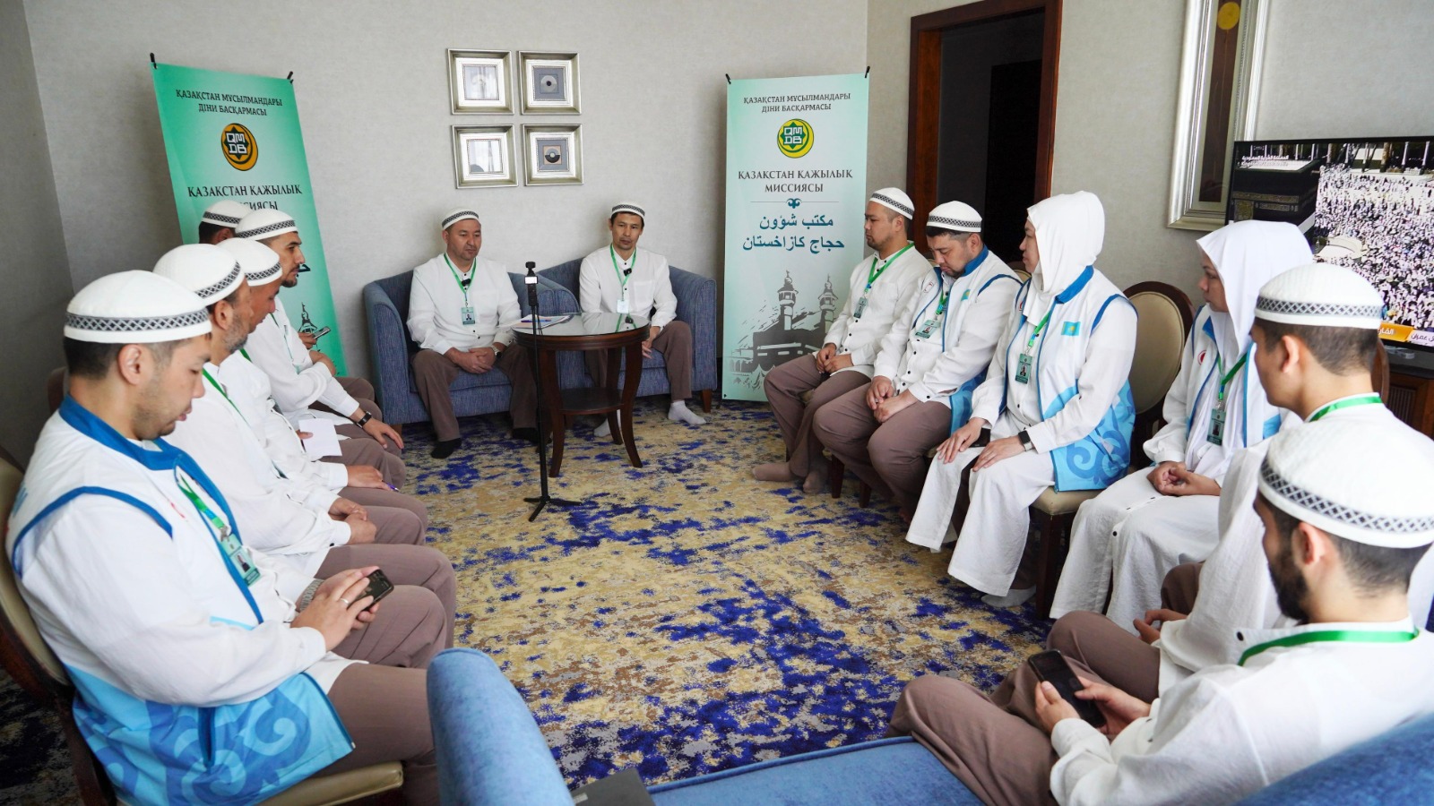 Во встрече приняли участие председатель Казахстанской Хадж Миссии, наиб муфтий Кенжетай Дуйсенбай, советник Верховного муфтия Бижигит Нуржигитулы, представитель Комитета по делам религий Министерства культуры и информации Ерлан Есбергенов, заведующий отделом Проповеди и наставления ДУМК Батыржан Мансуров, заведующий отделом Хаджа Жандилла Бекжигитов, а также другие члены Миссии, отвечающие за фетвы, информацию и первую медицинскую помощь.