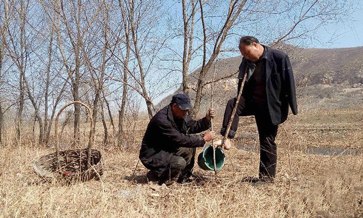 4. Каждый день в 7 утра они уходят из дома, вооружившись молотком и железным прутом. Денег на саженцы у друзей нет, поэтому для посадки они вручную собирают черенки, что, учитывая их возможности, не так-то легко. (yzdsb)