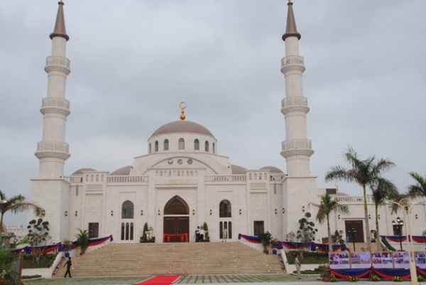 Роскошная, покрытая белой плиткой мечеть послужила сценой для выступления Хун Сена, который восхвалял религиозную терпимость, царящую в стране.