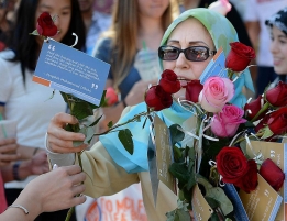 В нескольких районах города мусульманки раздали прохожим цветы и открытки с ценными наставлениями. В общей сложности женщины подарили жителям города 1500 роз. А на каждой открытке был написан хадис пророка Мухаммада (мир и благословения ему).