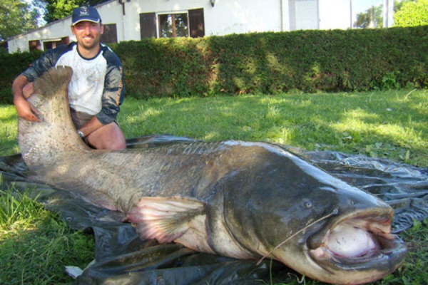Рыба достигала в длину 4 м и весила порядка 200 килограмм. Такого внушительного монстра поймали два рыбака. После вскрытия туловища рыбы были обнаружились останки костей человека и эмблема офицера Вермахта.