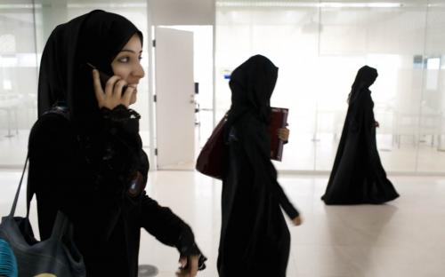 Эмиратские женщины служат нации, занимая должности в различных госучреждениях, в том числе в федеральном правительстве, где заседают девять женщин-министров.